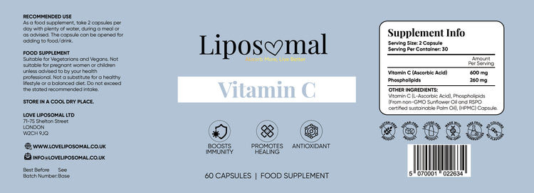 Love Liposomal Vitamin C is a powerful antioxidant with superior absorption and potency. It is essential for immune health and detoxification. It helps protect the body from harmful free radicals and toxins we encounter in our every day lives.